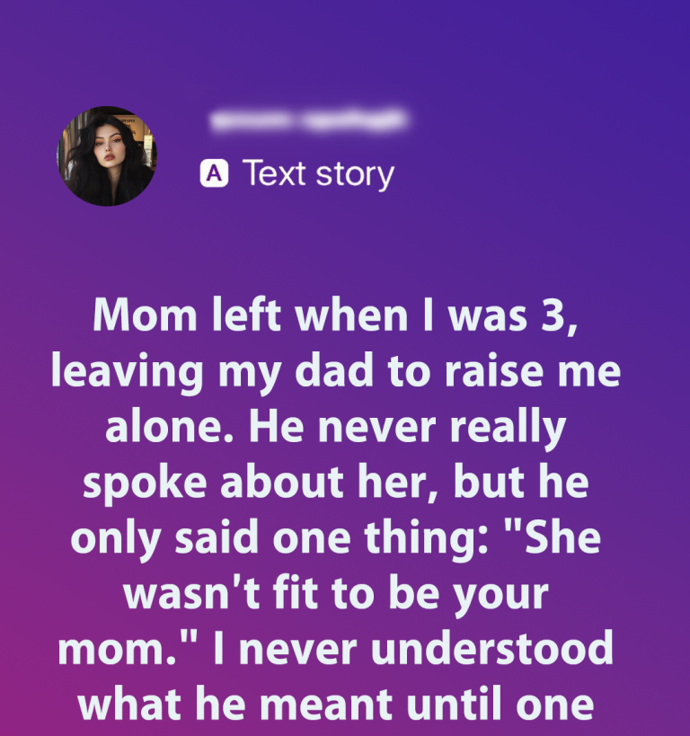 - Mom left when I was 3, leaving my dad to raise me alone. He never spoke about her, only said one thing, “She wasn’t fit to be your mom.” I never got what he meant, until one day when I was 18.