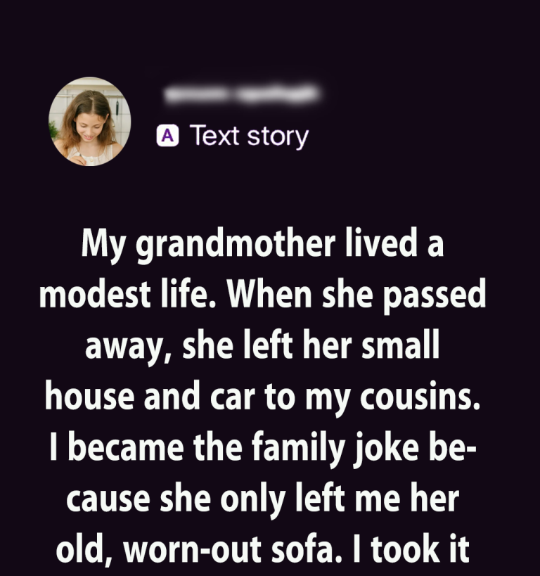 My grandmother lived a modest life. When she passed away, she left her small house and car to my cousins. I became the family joke because she only left me her old, worn-out sofa.I took it to a guy to fix it up. The moment he saw it, he turned pale and said, “Do you know what this is?”