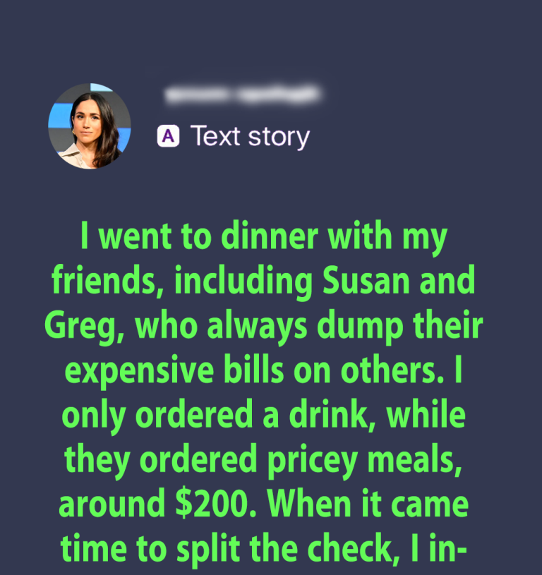 I went to dinner with my friends, including Susan and Greg, who always dump their expensive bills on others. I only ordered a drink, while they ordered pricey meals, around $200. When it came time to split the check, I insisted we only pay for what we ordered, leaving them with a bigger share.