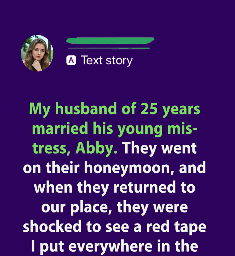 They walked in all smiles, hand in hand like the world had conspired just for them. My ex-husband of twenty-five years and his new wife—Abby, the much younger mistress he married right after our divorce. Still flushed from their honeymoon, they came back expecting to play house in the very home I built with my hands, my patience, and my years.But the red tape stopped them. It stretched across doorways, curled around furniture, zigzagged up the staircase like a silent warning. They froze the moment they saw it.