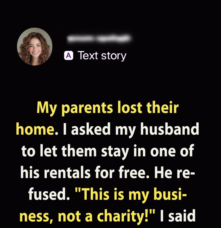 My parents lost their home. I asked my husband to let them stay in one of his rentals for free. He refused.This is my business, not a charity!”