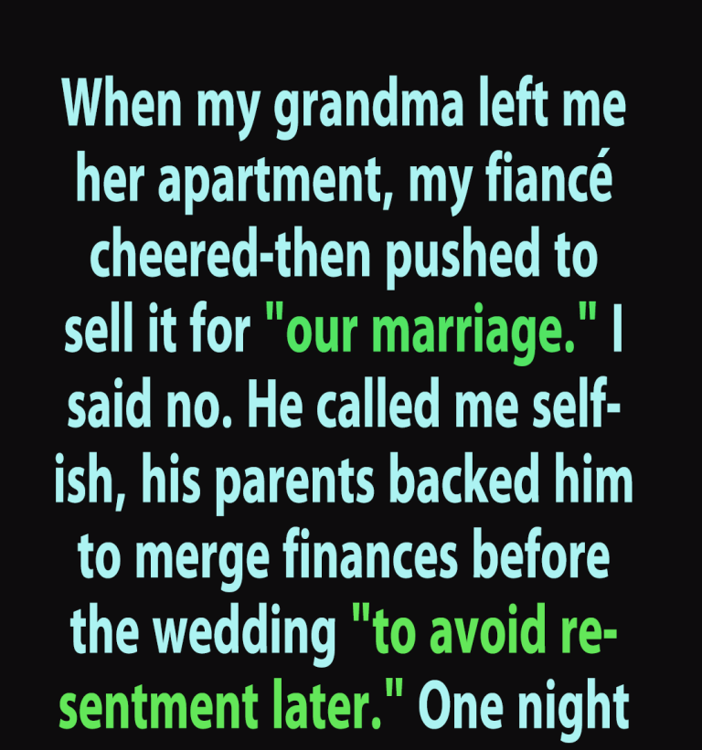 I reminded him that the will was written for me alone, that my grandmother wanted me to have security. I thought that would end the conversation. Instead, it escalated. He said I was being selfish, that I wasn’t thinking about “our marriage.” His parents even chimed in, hinting that if I “truly trusted him,” I’d merge everything before the wedding.