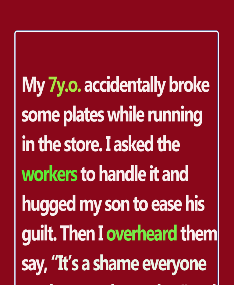 My 7-year-old son was happily running around a store when he accidentally broke some plates. I politely asked the store workers to clean it up and hugged my son, saying, “It’s okay, don’t worry.”