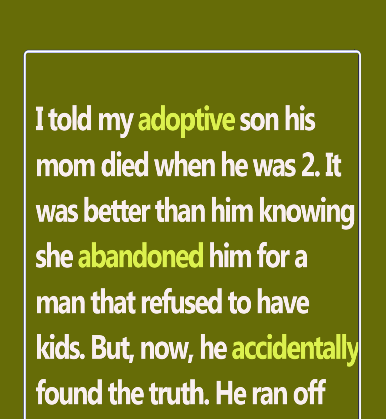 I adopted my son when he was only 5 years old. I found out that his mom abandoned him to live with another man that refused to accept her son. Rather than tell him the truth, I lied and said that she passed away when he was 2 years old.