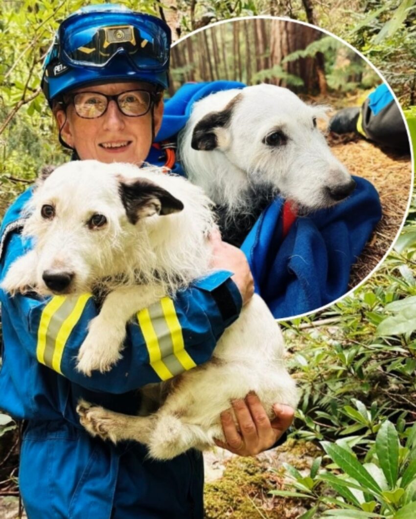 The rescue team, working with remarkable coordination, secured Reggie in a harness and began the slow, cautious climb back up the cliff. The difficult terrain and Reggie’s fragile condition made the climb slower than expected, but the team’s determination kept them going. With every step they took, Sarah’s heart filled with gratitude for the brave volunteers who were risking their own safety to save her dog.