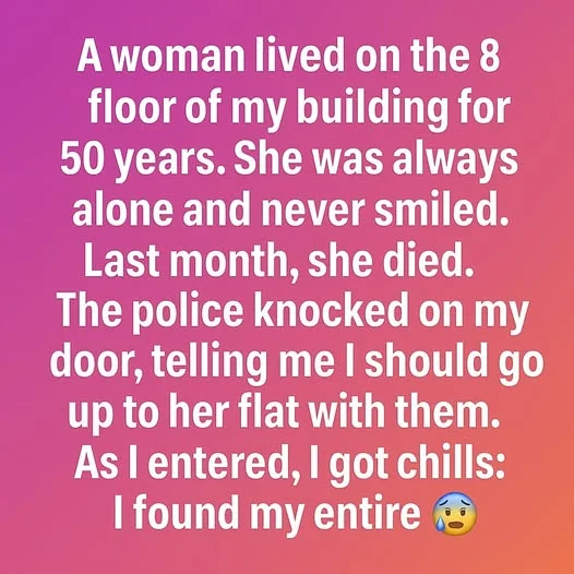 A woman lived on the 8th floor of my building for 50 years. She kept to herself and rarely interacted with anyone. Last month, she peacefully passed away.Soon after, the authorities contacted me and asked if I could accompany them to her apartment, as my name had been mentioned in her records. As I stepped inside, I was deeply moved: my entire childhood was displayed across her walls. Every corner of her home featured framed drawings I had created as a child—little doodles I used to leave near her door on my way to school.