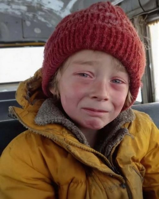 A little boy—seven, maybe eight—huddled against the window. Thin coat pulled tight around him like it was all he had. Backpack on the floor near his shoes, untouched, like he hadn’t moved since everyone got off.