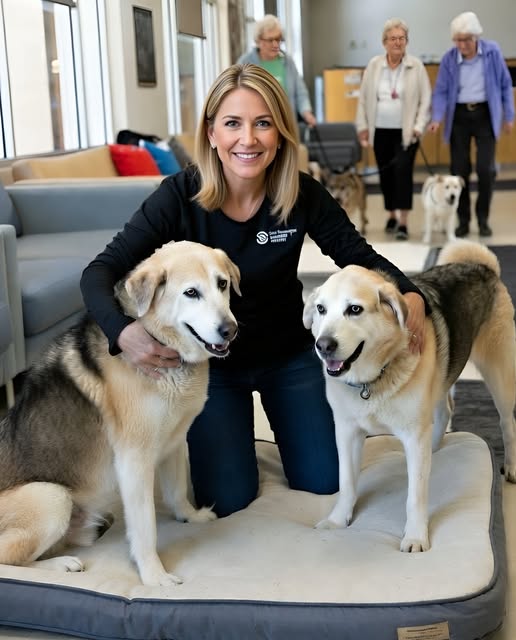 Sherri walked these senior dogs week after week, watching families pass their kennels without stopping. She saw how gentle they were, how little they asked for. And she began thinking about another overlooked group: senior citizens living alone.