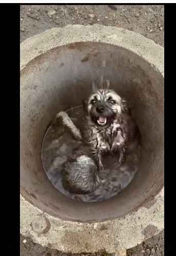 A faint whimper in the rain caught Mark, a local utility worker’s attention. Following the sound, he discovered a dog trapped at the bottom of a flooded manhole. Ollie, grey and white, emaciated and shivering, had been trapped for five days, his cries growing weaker with each passing hour.