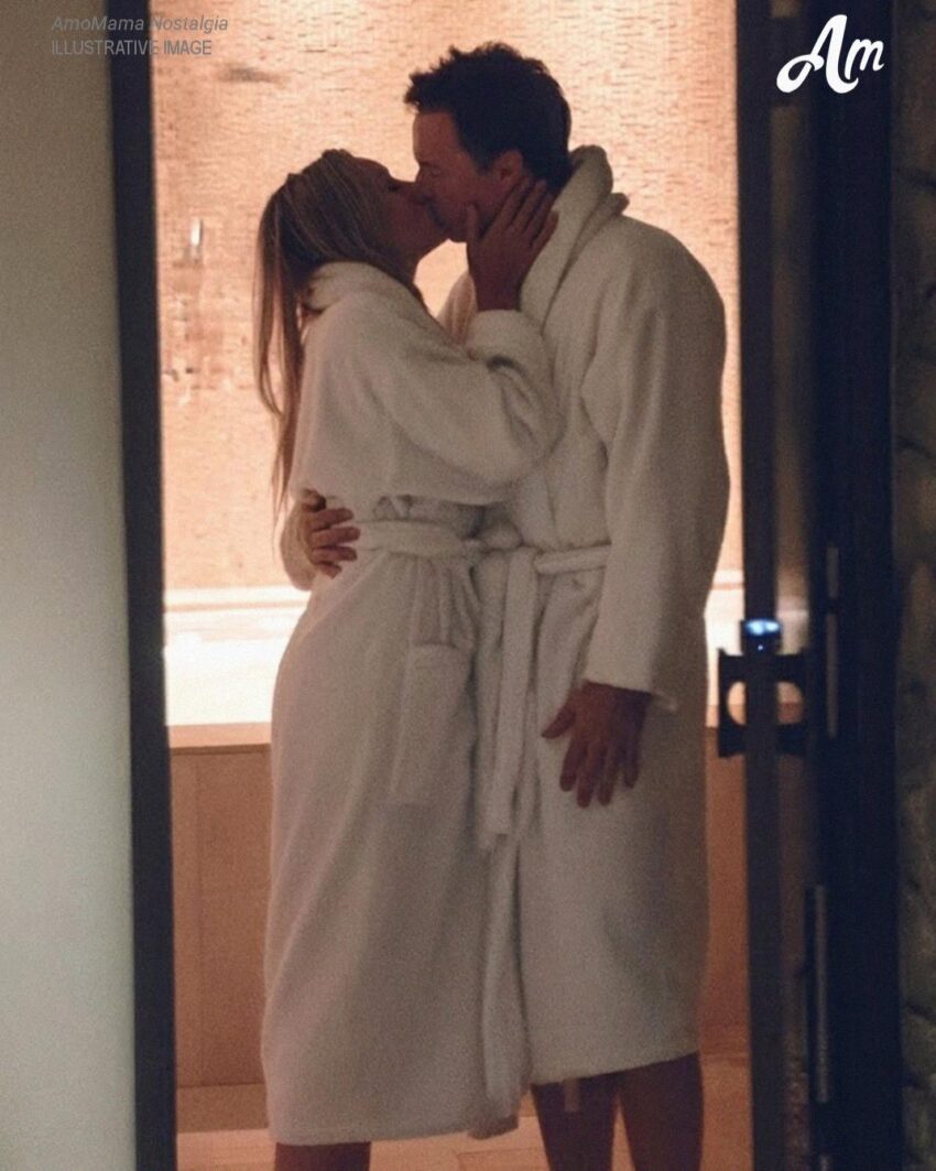 Mark’s shoulders were relaxed. Sabrina’s hair spilled down. They were whispering.