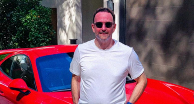 He got out wearing designer sunglasses, looking around at his undamaged property with visible satisfaction.