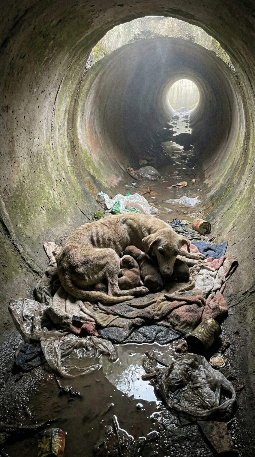 In the dim, forgotten underbelly of cities across the globe, where sunlight barely reaches and the air hangs heavy with dampness and decay, a single mother dog chose the most unlikely place to raise her family: a narrow concrete drainage pipe. Her story, pieced together from scattered rescues in countries far from one another, reveals a heartbreaking pattern of survival against impossible odds. What begins as a tale of abandonment and desperation unfolds with astonishing twists—acts of bravery, unexpected alliances, and moments of pure miracle—that have touched hearts worldwide.