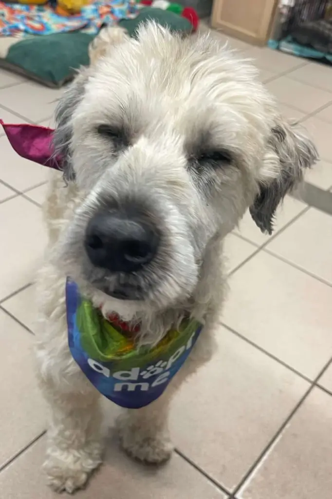 Teddy was a senior Wheaten terrier with a sweet face and a softer heart. He loved closeness. He loved calm voices and gentle touch. When staff sat beside him, he leaned in. When hands scratched behind his ears, he sighed deeply.