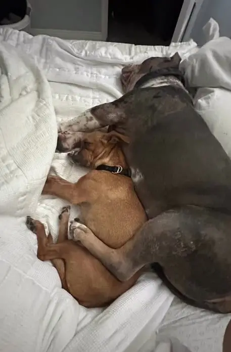 He smelled the house before he saw it. It smelled like blankets, warmth, and other dogs. When they met him, they didn’t hesitate. They sniffed his sideways nose like it was the most normal thing in the world.