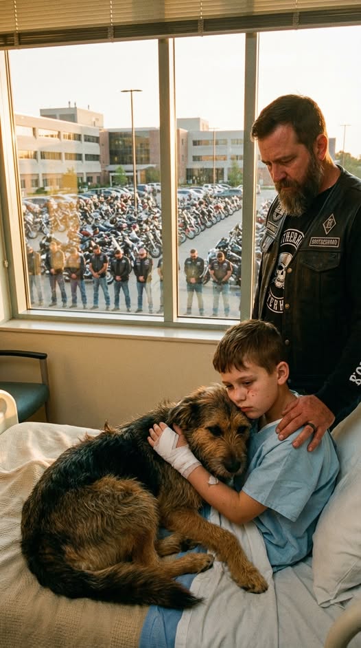 Outside the hospital windows, three hundred motorcycles lined the parking lot in perfect formation, chrome glinting beneath mid-morning sun.