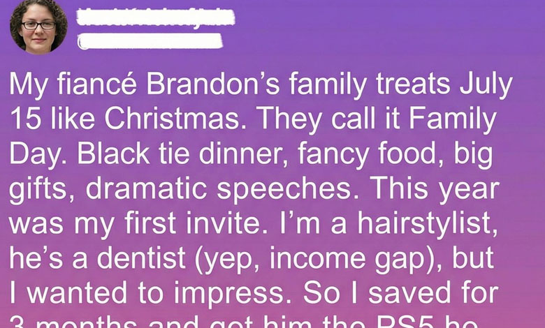 July 15 had always sounded magical the way Brandon described it. His family didn’t just celebrate “Family Day” — they staged it. Black-tie dress code, catered dinner, dramatic speeches, and gifts unveiled like scenes from a movie. This year was my first invitation. I’m a hairstylist; Brandon is a dentist. I’ve never measured love in income, but I’d be lying if I said I didn’t feel the gap that night. I wanted to belong. So for three months, I saved quietly and bought him the PS5 he’d been talking about — nearly $500, wrapped carefully with a handwritten note tucked inside.