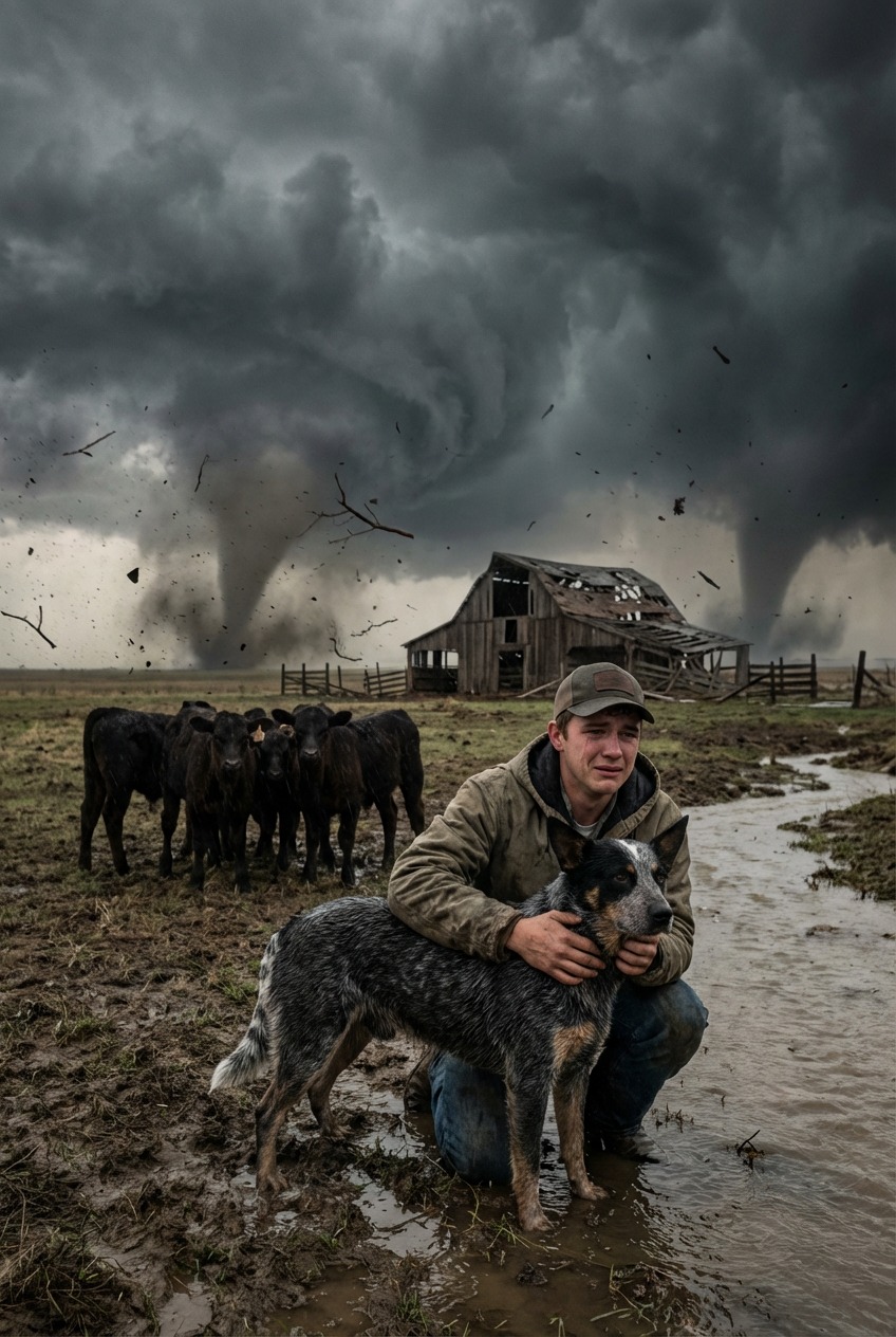 In the days that followed, the town rallied. News of the dog who had guarded the calves during the tornado spread faster than any official report. Volunteers arrived with tools and supplies. A local journalist wrote a piece about resilience and loyalty. Donations trickled in—not enough to erase all hardship, but enough to rebuild the barn roof and repair critical fencing.
