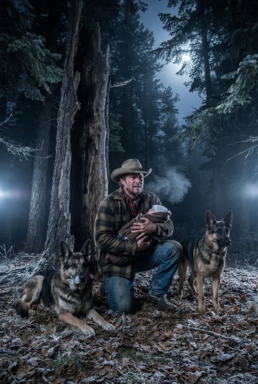My name is Sheriff Callum Reed, though most people in Pine Hollow just call me Cal, and that night I was out past the old logging road with two German Shepherds who had seen more of my life than most humans had: Ranger, my retired K-9 partner with a silvered muzzle and joints that ached when the temperature dropped, and Atlas, a younger, sharp-eyed trainee who still believed every rustle in the brush might be the start of glory. We weren’t chasing headlines or heroics; we were following up on a string of cabin break-ins that had left a handful of seasonal residents nervous and one elderly couple shaken enough to demand extra patrols, and winter in these woods has a way of turning minor crimes into full-blown tragedies because cold is not patient and it does not forgive.