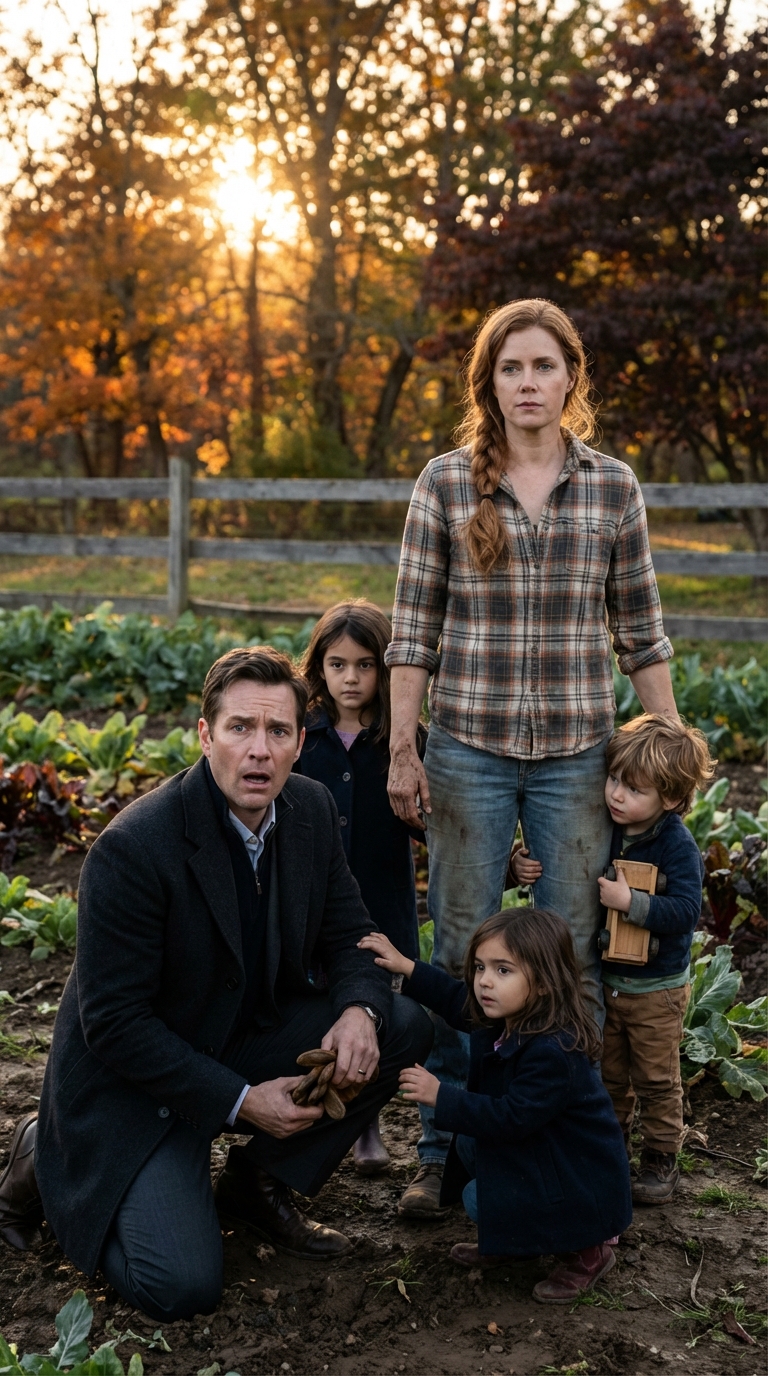 He parked near a weathered fence and stepped out, the crisp autumn air brushing against fabric that had never known soil. In the distance, he saw her—Mara—kneeling between rows of late-season greens, her braid loose over one shoulder, sunlight catching strands of auburn hair he had once brushed back from her face. She looked neither surprised nor fragile when she noticed him; she simply stood, wiping her hands on her jeans, and regarded him with an expression that was neither welcome nor hostility but something steadier.