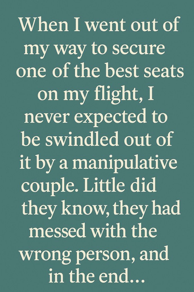 When I went out of my way to secure one of the best seats on my flight, I never expected to be swindled out of it by a manipulative couple. Little did they know, they had messed with the wrong person—and in the end, I emerged victorious.