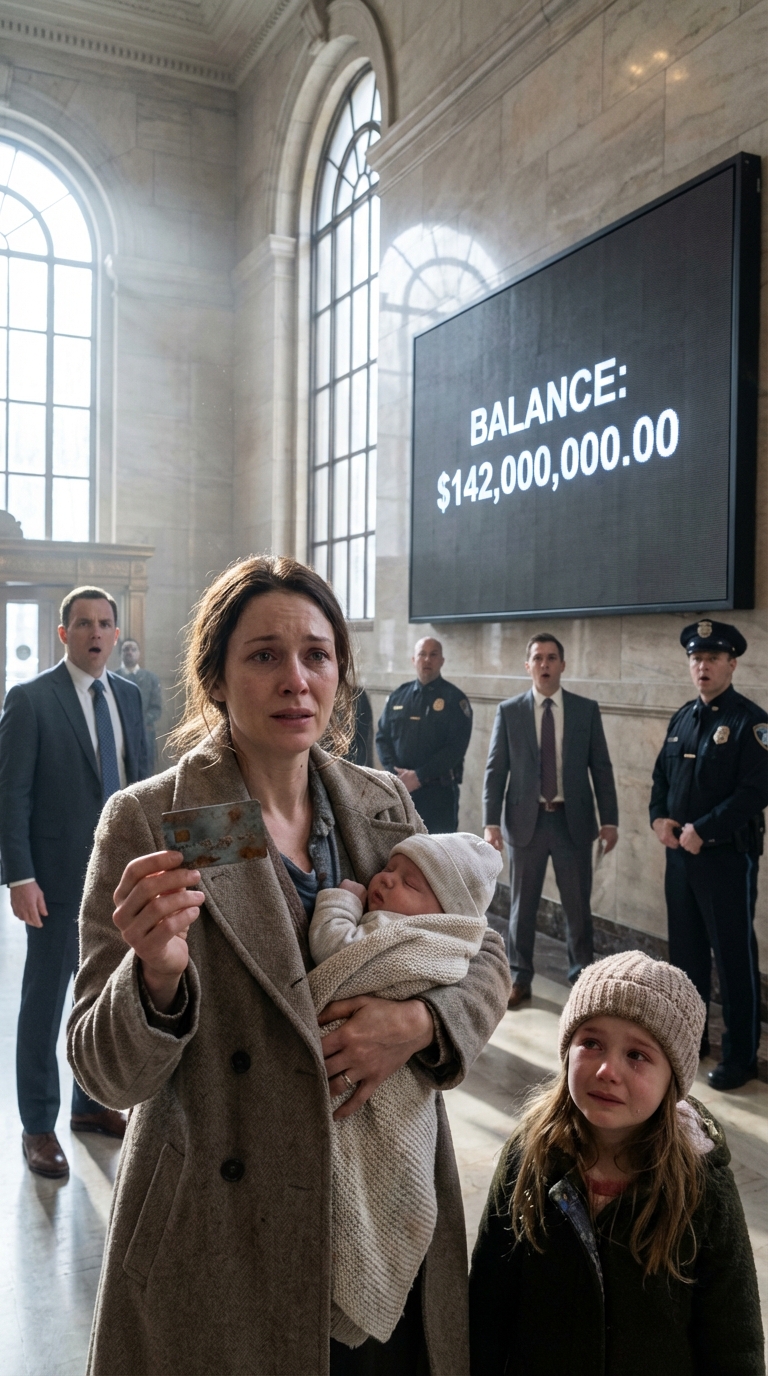 A homeless mother nervously stepped into a bank clutching her late grandfather’s worn-out card, hoping for a few dollars. But when the teller inserted it, the balance that flashed across the screen stunned the entire room into silence.