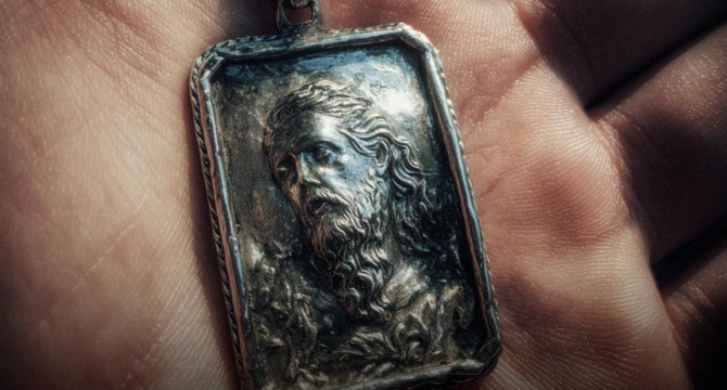 A small oval charm on a thin chain, silver worn smooth from years against her skin. She wore it to weddings, to funerals, to the grocery store, and to bed.