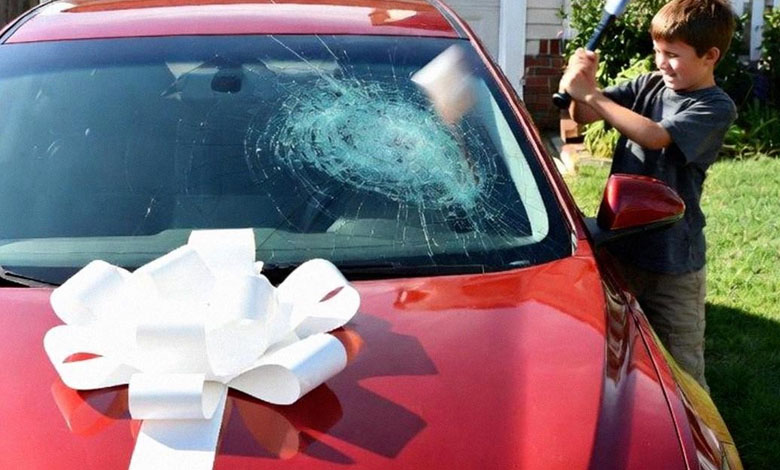 Jeremy stood in the driveway with a wooden baseball bat, swinging it into the hood of my car.