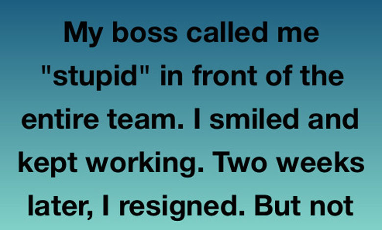 My boss called me “stupid” in front of the entire team. I smiled and kept working. Two weeks later, I resigned. But not before I scheduled one “urgent” meeting. I invited everyone. Even HR. The whole room went dead silent when I stood up, connected my laptop to the projector, and said, “Before I go, I’d like to show you something.”