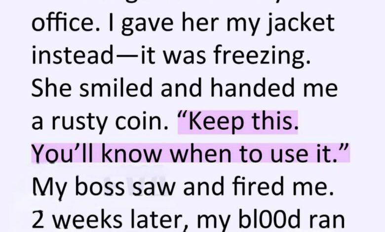 She hesitated, but I insisted. As she slipped her arms into the sleeves, I felt a strange sense of rightness. In exchange, she pressed a rusty, heavy coin into my palm. “Keep this,” she said with a mysterious certainty. “You’ll know when to use it.”
