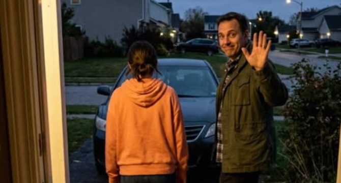 At first, it looked ordinary, just the dull wash of streetlights sliding across the windshield, a near-empty road, and Mike’s arm moving slightly as he adjusted the wheel.
