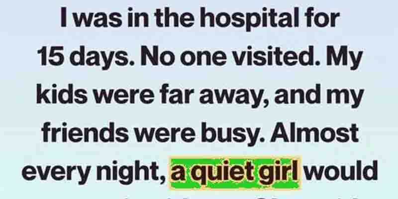 That was when the loneliness settled in, heavy and absolute. Almost every night, a girl appeared—quiet, maybe thirteen or fourteen, with dark hair tucked behind her ears and eyes that seemed far older than her face. She never introduced herself or explained why she was there. She simply pulled a chair beside my bed and sat with her hands folded, as if she belonged. I couldn’t speak or ask questions, but somehow she understood. One night, she leaned in and whispered gently, “Be strong. You’ll smile again,” and those words became something I clung to when the pain and fear felt unbearable.