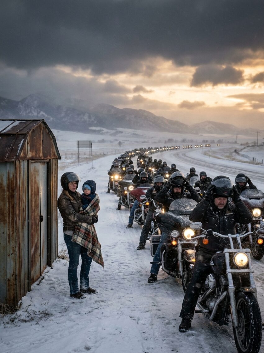 Rowan Pierce didn’t set out to prove anything that night. At forty-one, she had long outgrown the kind of stubbornness that confuses risk with courage, though if you asked anyone who rode with her, they’d tell you she still had a way of leaning into difficult situations when others leaned out. It wasn’t recklessness so much as instinct, a habit shaped by years in places where hesitation could cost more than action. Before the road became her life, Rowan had spent nearly a decade as a field mechanic attached to military transport units, the kind of job that teaches you quickly how systems fail under pressure and how little room there is for error when they do. After she left that world, she didn’t exactly settle down. Instead, she drifted into something that felt closer to belonging than anything she’d known before—a riding collective called the Ashen Wolves, a loose network of bikers who carried more history than noise, people who showed up when things went wrong and didn’t always explain why.