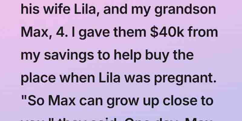 We live in neighboring apartments—close enough that I helped my son and his wife, Lila, buy theirs. I gave them $40,000 from my retirement savings so they could raise Max nearby. I remember signing the cheque thinking it was worth it for family.